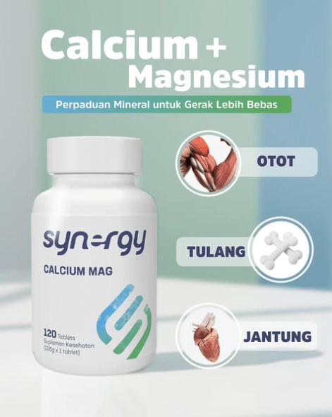 Synergy Calcium Mag Suplemen Kalsium & Magnesium untuk Tulang dan Jantung Sehat Synergy Calcium Mag adalah suplemen kalsium...